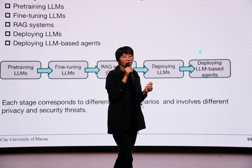 In order to strengthen the ties and academic exchanges between the City University of Macau and the Minzu University of China, and to explore the security and privacy protection of big models and other cutting-edge directions, Professor Tianqing Zhu from the Faculty of Data Science of the City University of Macau led a team of faculty members to visit the Hanian International College of the Minzu University of China on the 17th of December, 2024 and to give a series of four lectures on this topic. The seminars aimed to help undergraduate students to enhance their research capabilities and to understand the latest progress and future development of big model security and privacy protection.