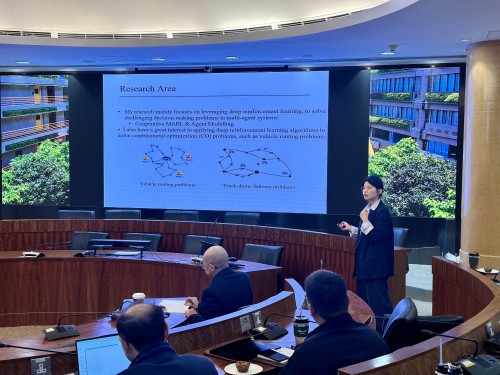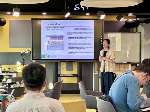 The first workshop on ‘Artificial Intelligence’ was chaired by Vice Dean Tianqing Zhu. In her opening remarks, she expressed her delight at the development of the Faculty's high-level professional faculty and highlighted the faculty's remarkable achievements in academic research and teaching innovation. Professor Honggang Zhang then shared the latest advances in networked large-scale language modelling, while Assistant Professor Xingfeng Li introduced the application of affective computing, healthcare and well-being computing in the field of speech. Assistant Professor Jing Sun gave an in-depth presentation on the application and challenges of deep reinforcement learning in optimisation and decision making, and finally, Assistant Professor Peng Qin discussed semantic research on commercial text message exchange in heterogeneous scenarios.