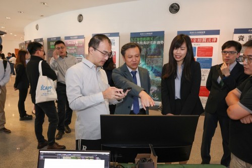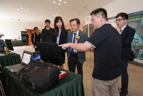 The ribbon-cutting ceremony for the opening of the exhibition was officiated by Associate Professor Wenjian Liu, Director of Association for Promotion of Science and Technology of Macau, and Associate Dean of the Faculty of Data Science, City University of Macau; Susanto Rahardja, Academician of the Singapore Academy of Engineering; Prof. Zhuo Ma, Distinguished Youth of Shaanxi Province and Huashan Scholar of the Xidian University; Ms.Jiaxin Wu Deputy Secretary General of the MAPST; Dr. Associate Professor Zuobin Ying, programme coordinator of the Doctoral Programme of the Faculty of Data Science of the City University of Macau, and Assistant Professor Hoi Io Kong, programme coordinator of the Undergraduate Programme of the Faculty of Data Science of the City University of Macau were the officiating guests of the ceremony, which marked the official opening of the exhibition.