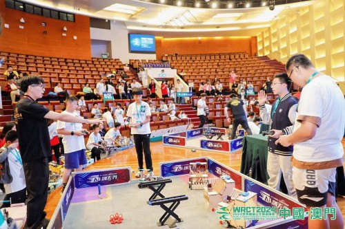 The WRCT 2024 World Robot Competition selection competition, hosted by the Chinese Institute of Electronics and hosted by the Guangdong-Hong Kong-Macau Education and Training Association and City University of Macau, was held yesterday at the Cultural Center of City University of Macau. The competition attracted 150 primary and secondary school students from Macau and the Mainland to participate. The 18 teams that won the championship, second and third place will participate in the national finals to be held at the end of this year. Open a strong conversation with managing robots techniques between teenagers, the event aims to provide a platform for teenagers to demonstrate their skills and encourage students to develop an innovative spirit and practical ability through a series of training in theoretical learning, logical thinking and hands-on practice, which is an important way to help them grow into high-quality talents and inject new momentum into the sustained and healthy development of the economy and society.