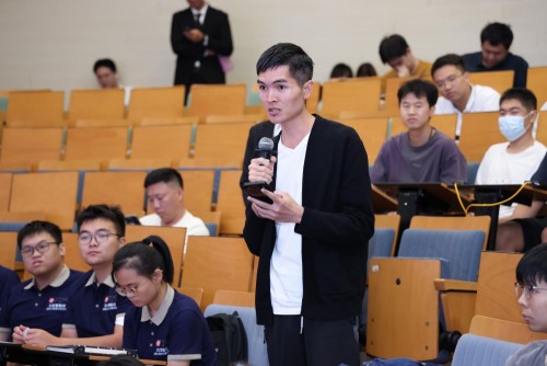 In his speech, student representative Xinbo Fu expressed his sincere gratitude to Academician Fang Binxing for his care and guidance to the students at City University of Macau on behalf of all the freshmen of Fang class. He continued that he was honored and proud to be a member of the Fang Class in the context of accelerating global informatization and increasing cybersecurity challenges. Students in the Fang class have the opportunity to interact with experts and scholars in the field, learn with outstanding students from top universities, devote themselves to the most cutting-edge technology and research of cybersecurity, exercise their ability to apply what they have learned, and lay a solid foundation for their career development and research work foundation and contribute wisdom and strength to defend cyberspace security.