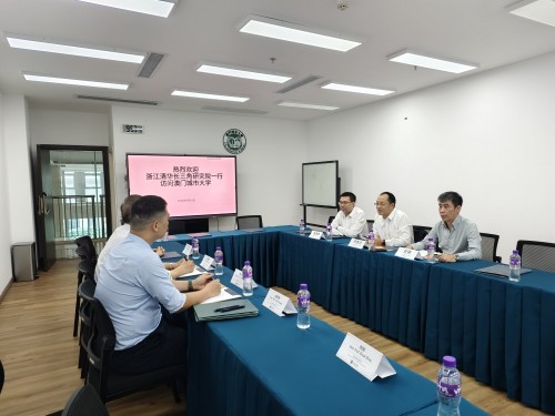 Both parties will have in-depth discussions on the plan for joint talent cultivation. The attendees of this symposium also include Anyang, a representative of Yangtze Delta Region Institute of Tsinghua University, Zhejiang; Representatives from the Faculty of Data Science include programme coordinator Zuobin Ying, Assistant Professor Shuai Zhou, and Assistant Professor Huajie Chen.