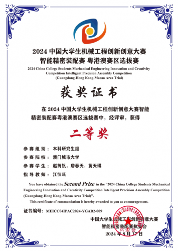 I am honored to participate in the 2024 College Student Intelligent Assembly Competition. As the second prize winner, I feel extremely honored and excited. This is the best reward for our team's hard work and sweat. Finally, I would like to thank the competition organizing committee for providing us with such a platform to showcase and challenge ourselves. At this stage, we have learned a lot of valuable knowledge and skills. This is a great experience for us, and we hope to achieve even better results in the future.