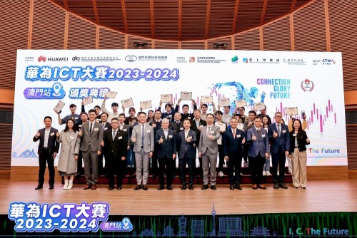 The Huawei ICT Competition 2023-2024 Macau Station Awards Ceremony was successfully held on December 16th in the conference hall of the Science Museum. The event gathered more than 200 participants, including government and institutional representatives, representatives from the technology industry, and teachers and students from 19 local universities, to discuss topics such as talent cultivation and enhancing the competitiveness of local technology talents, and to commend the winning teams of this competition.