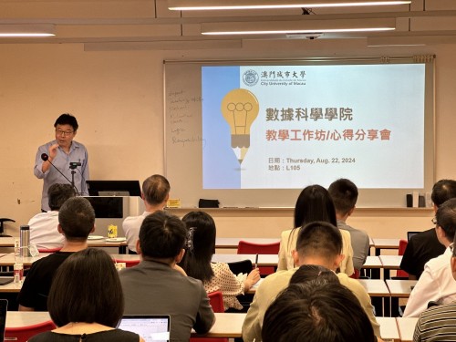 In order to improve the quality of teaching and promote the exchange of experiences, the Faculty of Data Science organized a teaching workshop on August 22, 2024. The workshop invited Professor Wanlei Zhou, Vice President of City University of Macau and Dean of the Faculty of Data Science, Professor Tianqing Zhu, Vice Dean, Associate Professor Wenjian Liu, Vice Dean, Associate Professor Zuobin Ying, Doctoral Programme Coordinator , Associate Professor Chia-Wei Chu, Programme Coordinator of the Bachelor of Computer Science, Assistant Professor Hoi Io Kong, Programme Coordinator of the Bachelor of Intelligence Technology and Services, and all the faculty teachers of the faculty were present.