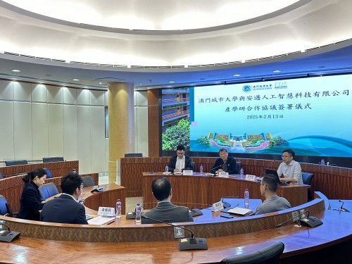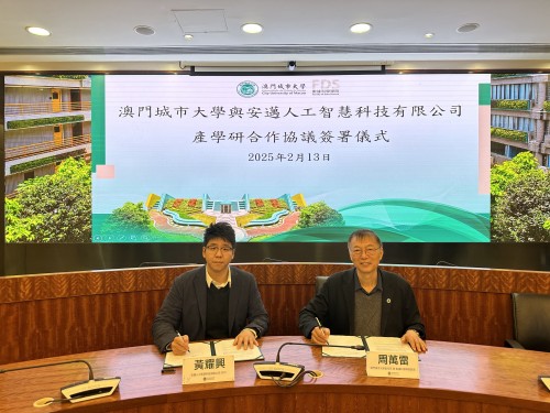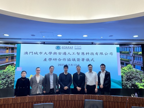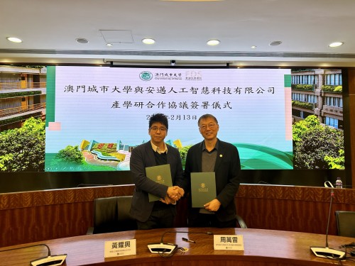 In order to deepen the cooperation between industry, academia and research, and promote technological innovation and industrial upgrading, the City University of Macau and Anmai Artificial Intelligence Technology Co., Ltd. signed a cooperation agreement on February 13 to establish a cooperative partnership. Huang Yaoxing, CEO of Anmai Artificial Intelligence Technology Co., Ltd., and his delegation visited City University of Macau and were warmly received by Vice President Wanlei Zhou.