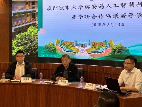 Vice President Wanlei Zhou introduced City University of Macau's scientific research achievements, laboratory construction and future development plans in the field of data science. City University of Macau's Faculty of Data Science actively cooperates with universities, enterprises and institutions at home and abroad in industry-university-research exchanges. CEO Yaoxing Huang introduced the development history, industry characteristics and future plans of Anmai Artificial Intelligence Technology. He said that Anmai Artificial Intelligence Technology attaches great importance to cooperation with universities and looks forward to deeper cooperation with City University of Macau in joint research projects, talent training, and achievement transformation, so as to jointly promote the innovation and application of artificial intelligence technology.
