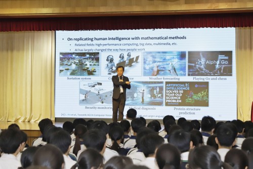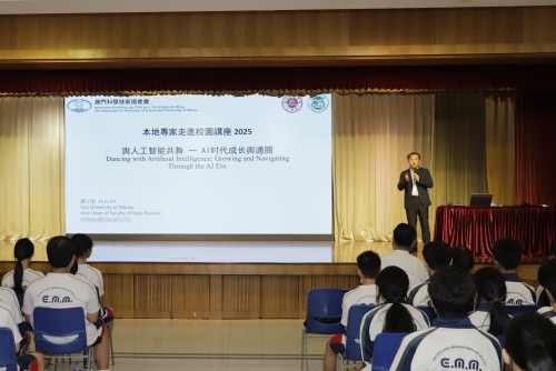 To respond to the National Science Popularization Day and promote the popularization of scientific knowledge among teenagers, Associate Professor Wenjian Liu, Associate Dean of the School of Data Science at City University of Macau, was recently invited to attend the "Local Experts Enter Campuses" series of science popularization activities hosted by the Association for Promotion of Science & Technology of Macau and sponsored by the Macau Foundation. He delivered a special lecture titled Dancing with Artificial Intelligence: Growth and Success in the AI Era to over 250 teachers and students of ESCOLA DOS MORADORES DE MACAU.