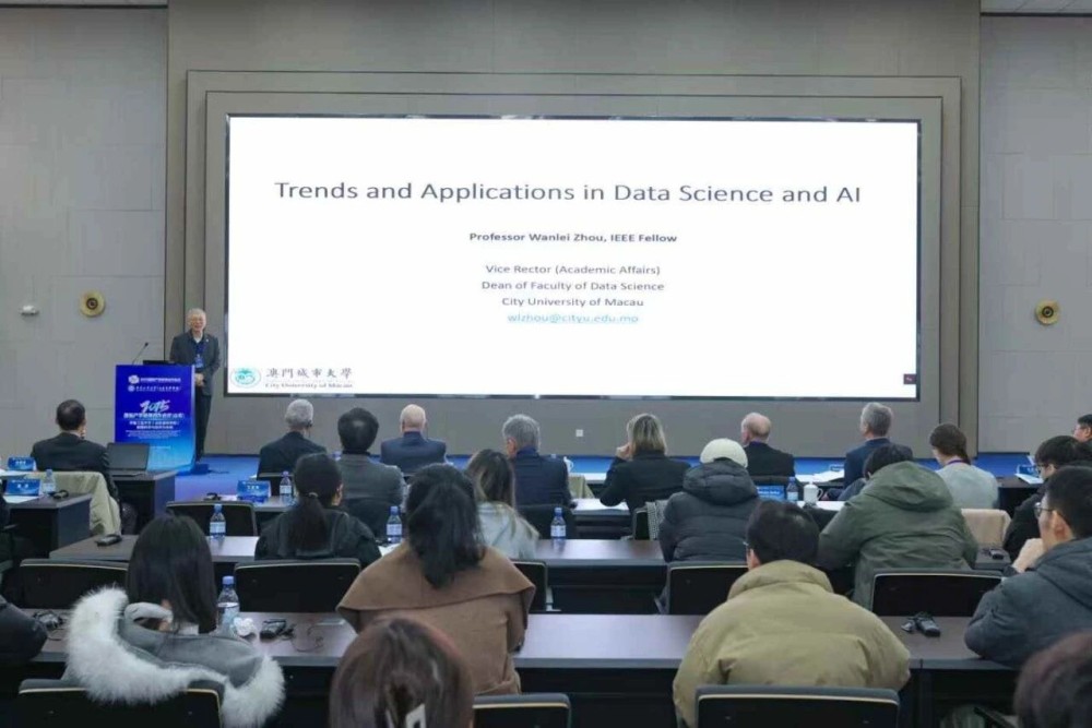 The Data Science and Technology Sub-Forum of the 2025 International Conference on Industry-University-Research-Application Cooperation (Shandong) was recently held in Jinan. Professor Zhou Wanlei, Vice Rector of the City University of Macau, was invited to deliver a keynote speech titled “Trends and Applications of Data Science and Artificial Intelligence.”