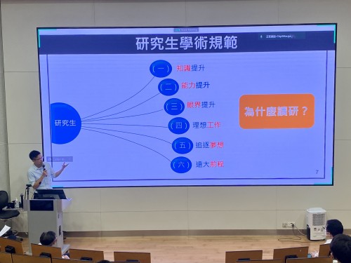Assistant Professor Weng Tak Kuok gave a detailed explanation of the academic standards for graduate students, including typical cases of academic misconduct, regulations on the construction of academic style in key universities at home and abroad, manifestations of academic misconduct, issues that need attention in writing, and chart processing. Students have a deeper understanding of the structure and logic of essay writing.