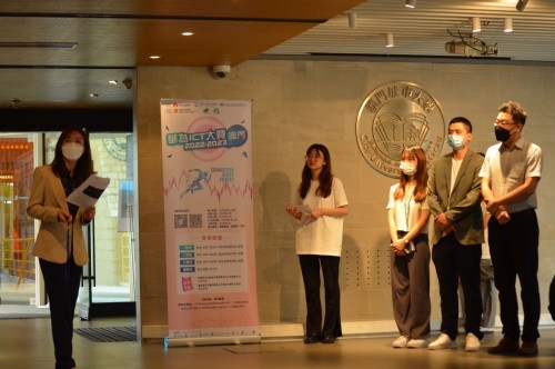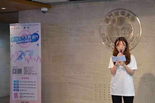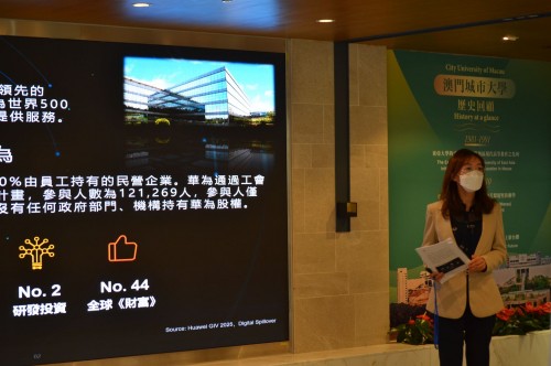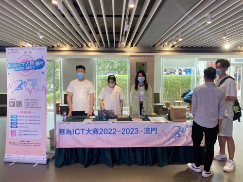 Huawei Global ICT Competition-City University of Macau Roadshow was held at 12:00 pm on September 29 in the student garden. Huawei Macau Branch Account Director Wang Yuanzhu, Brand Manager Xu Min, Network Solution Engineer Huang Yida, and Programme Coordinator of the Faculty of Data Science of City University of Macau Chia-Wei Chu, Zuobin Ying and others attended the roadshow. Programme Coordinator Chia-Wei Chu presented souvenirs to Yuanzhu Wang, Account Director of Huawei Macau Branch, on behalf of the Faculty of Data Science of City University of Macau. On that day, Director Yuanzhu Wang issued certificates to students who registered for online courses during the summer.