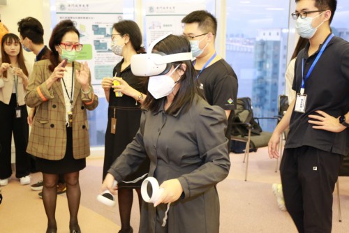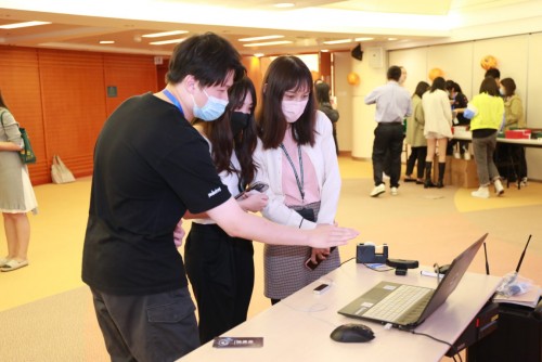 The third "Go Green!" faculty and staff sharing session of City University of Macau in the 2022/2023 academic year was held yesterday at the exhibition hall of the Cultural Center of Taipa Campus. This event was hosted by the Faculty of Data Science. VR product displays and information security game booths were set up at the event to attract colleagues to experience and participate.