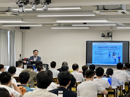 The Faculty of Data Science held an "Academic Salon" in T106 on the afternoon of December 15, 2023, providing graduate students with an opportunity to communicate face-to-face with faculty tutors, allowing graduate students to communicate and share their learning experiences. The event invited Professor Wanlei Zhou, Vice President and Dean of the Faculty, Professor Tianqing Zhu, Vice Dean, Associate Professor Wenjian Liu, three Programme Coordinators and a group of faculty teachers to attend the meeting and conduct academic sharing. A total of more than 100 graduate students participated in this academic event. Salon activities.