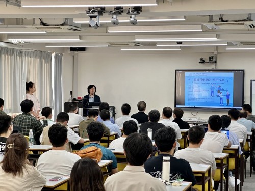 The faculty invited graduate student representatives from our college to share their experiences in postgraduate study. They include Huang Jiahao, a first-year master's student in Data Science, Wenjiang Huo, a first-year master's student in Computer Science, Qiang Zhang, a first-year Doctoral student in Data Science and Computer Science. Hao Ren, a first-year Doctoral student in Computer Science, shared his learning and research experiences.