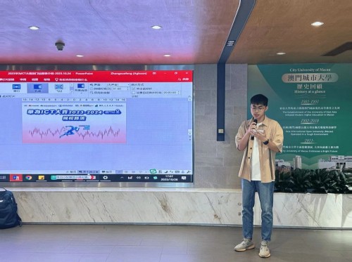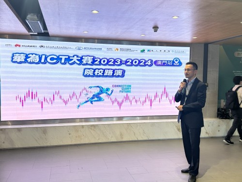 In order to let everyone better understand and participate in this competition, Huawei and the Faculty of Data Science of City University of Macau held a special roadshow event in the student garden on October 26. Xuefeng Zhang, Director of Asia Pacific Digital Communications, Min Xu, Brand Manager of Huawei Macau Branch, and Wen Baoru of Human Resources Department, as well as Wenjian Liu, Vice Dean of the Faculty of Data Science, City University of Macau, and Programme Coordinators Chia-Wei Chu and Weng Tak Kuok attended the roadshow. Xuefeng Zhang introduced the company and industry development to the students, and Min Xu introduced the details of the competition. Students present actively asked questions and signed up the event .